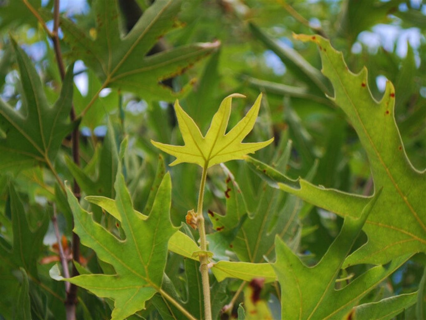 Deze Dakplataan is van de variant Platanus orientalis ‘Digitata’. Ook wel de Oosterse Plataan genoemd. De bast is geel en de groengrijze schors bladdert af waardoor de stam vlekkerig wordt. Het blad ziet er decoratief uit. De randen zijn scherp getand. De boom krijgt net als de gewone plataan stekelige bruine balletjes. Die blijven tot lang in de winter hangen. Kan tegen alle grondsoorten.
