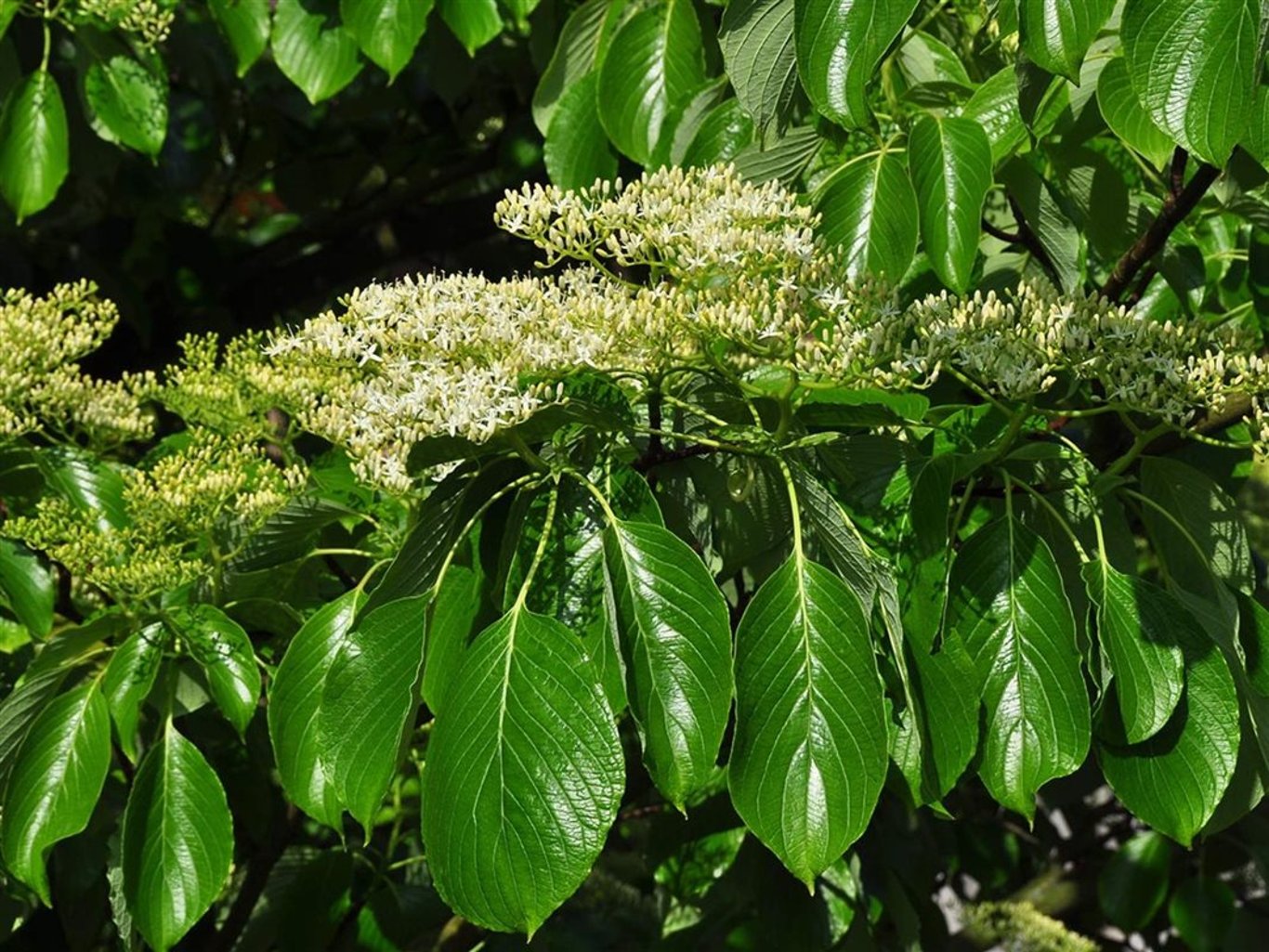 De Cornus controversa dakvorm of de Dak Reuzenkornoelje is een aanwinst voor uw tuin. Er komen mooie creme witte bloemen in. Het blad is frisgroen. In de herfst verkleurt het blad naar rood en komen er niet giftige blauwe besjes in.
