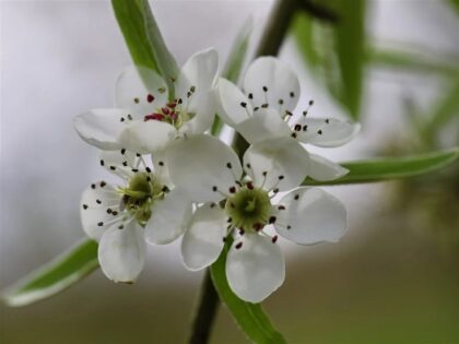 De Daksierpeer heeft groen blad dat in de herfst mooi verkeurt in gele en rode kleuren. De bloei is uitbundig…