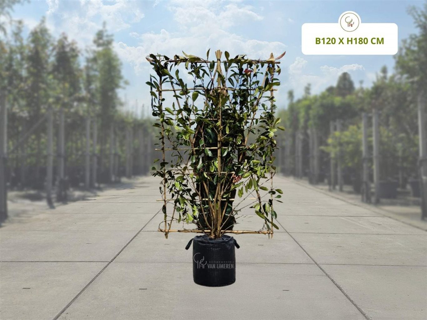 Dit soort is de laatste jaren erg populair. De bloeitijd is van mei tot en met juli, wanneer er witte bloemen verschijnen. Deze kant-en-klare haag wordt geleverd op een bamboerek van 120×180 cm, waardoor hij direct geplaatst kan worden.