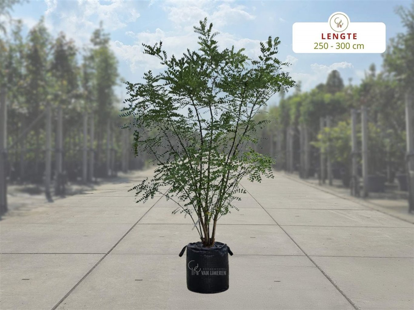 De Styphnolobium japonicum Meerstammig, ook wel bekend als de Honingboom. Het is een sierlijke meerstammige boom met mooie geveerde bladeren. In de herfst verschijnen er grijze peulen. De Honingboom kan ongeveer een hoogte bereiken van 4 tot 10 meter. Geschikt voor klei-, zand- en kalkrijke grond.