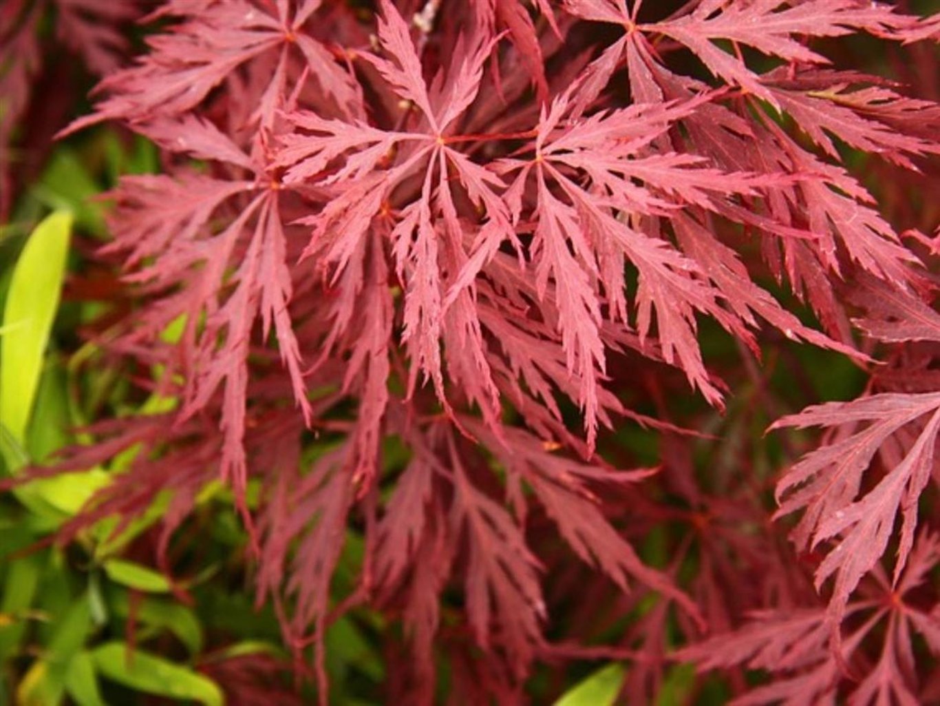 Acer palmatum ‘Dissectum Inaba Shidare’ is een sierlijke Japanse esdoorn. De uiteindelijke hoogte van de halfstam bedraagt doorgaans 2 tot 3 meter, terwijl de breedte ongeveer 2 tot 3 meter kan zijn. De bladeren zijn diep ingesneden en een rood tot donkerrode kleur.