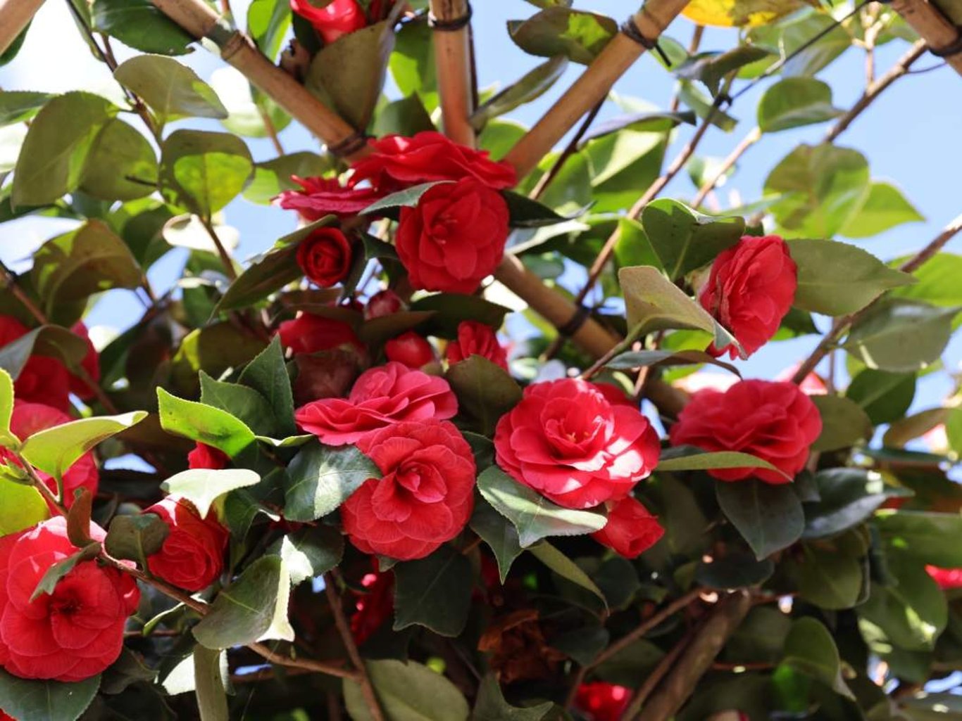 De Camellia japonica is een groenblijvende boom, ook wel de Japanse roos genoemd. Dit is een groenblijvende boom, het blad is donkergroen en heeft een glans. Hij bloeit vroeg in het voorjaar, ongeveer van februari tot mei. Er komen felroze tot felrode bloemen in, die lijken op rozen. Het is een echte eyecatcher.
