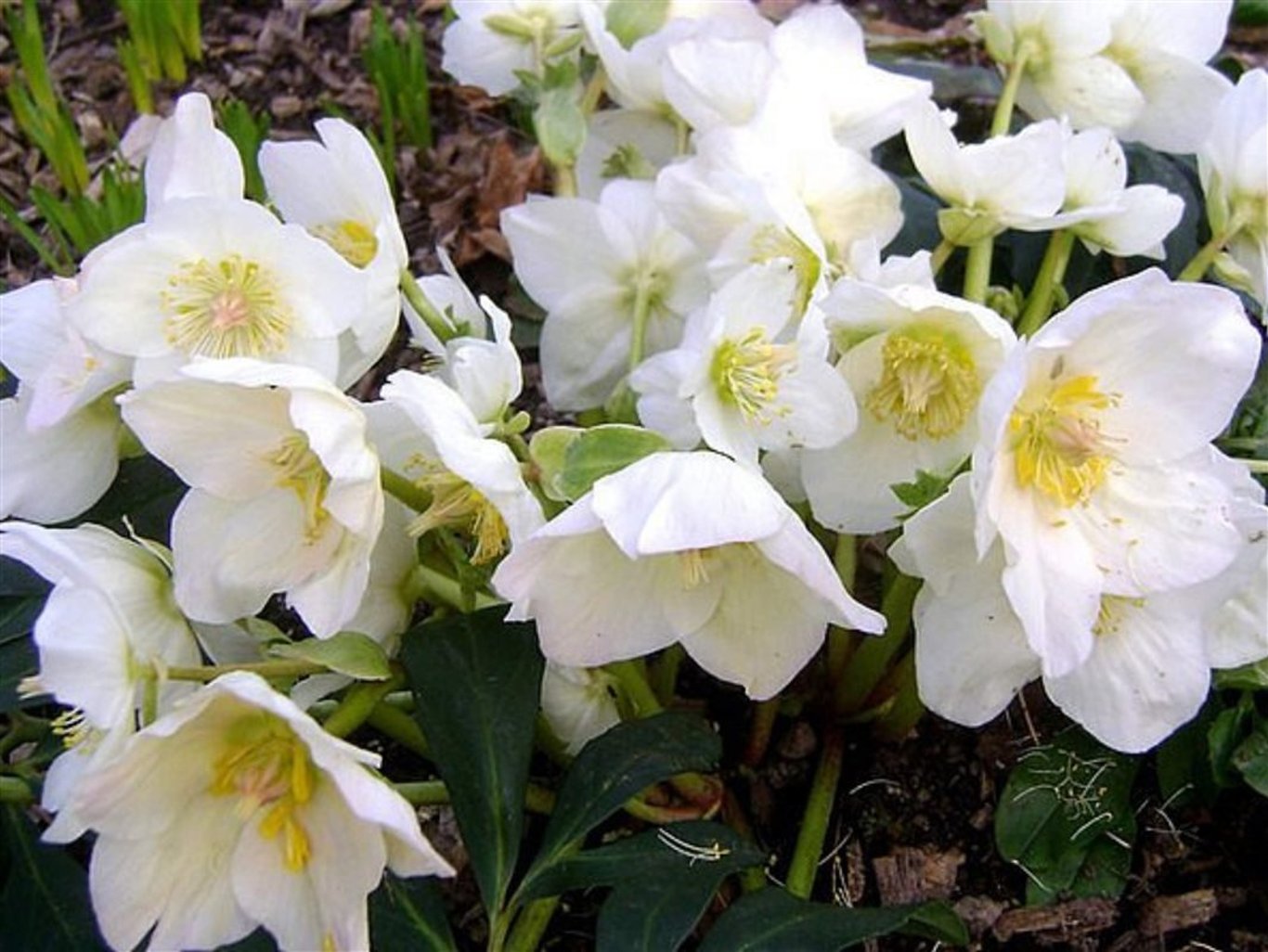 De Helleborus is een wintergroene plant. En bloeit al heel vroeg. Begint vaak al in januari. Kan zelfs al wel eens in december. Vandaar de naam Kerstroos. Er komen witte bloemen in. En kan niet tegen al te natte grond. Maar kan wel tegen strenge vorst.