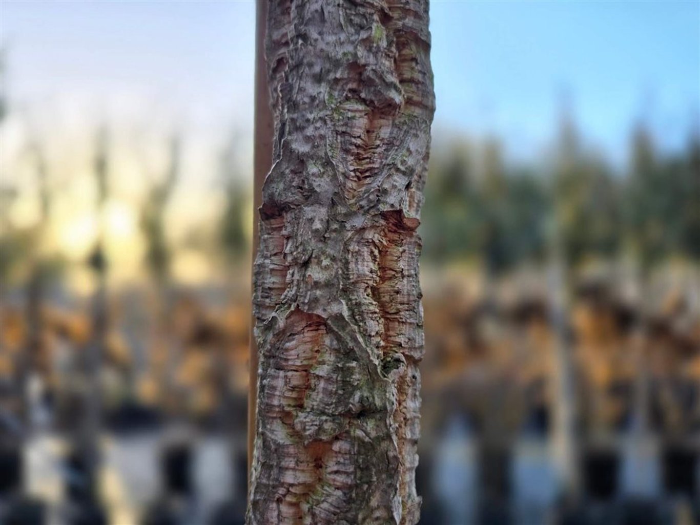 De Quercus suber Meerstammig, beter bekend als de Kurkeik, komt oorspronkelijk uit landen rond de Middellandse Zee, zoals Spanje, Portugal en Italië. Het meest opvallende kenmerk is de dikke, zachte kurkschors, die als een ruwe, sponsachtige laag om de stammen zit. De bladeren zijn donkergroen, leerachtig en licht golvend.