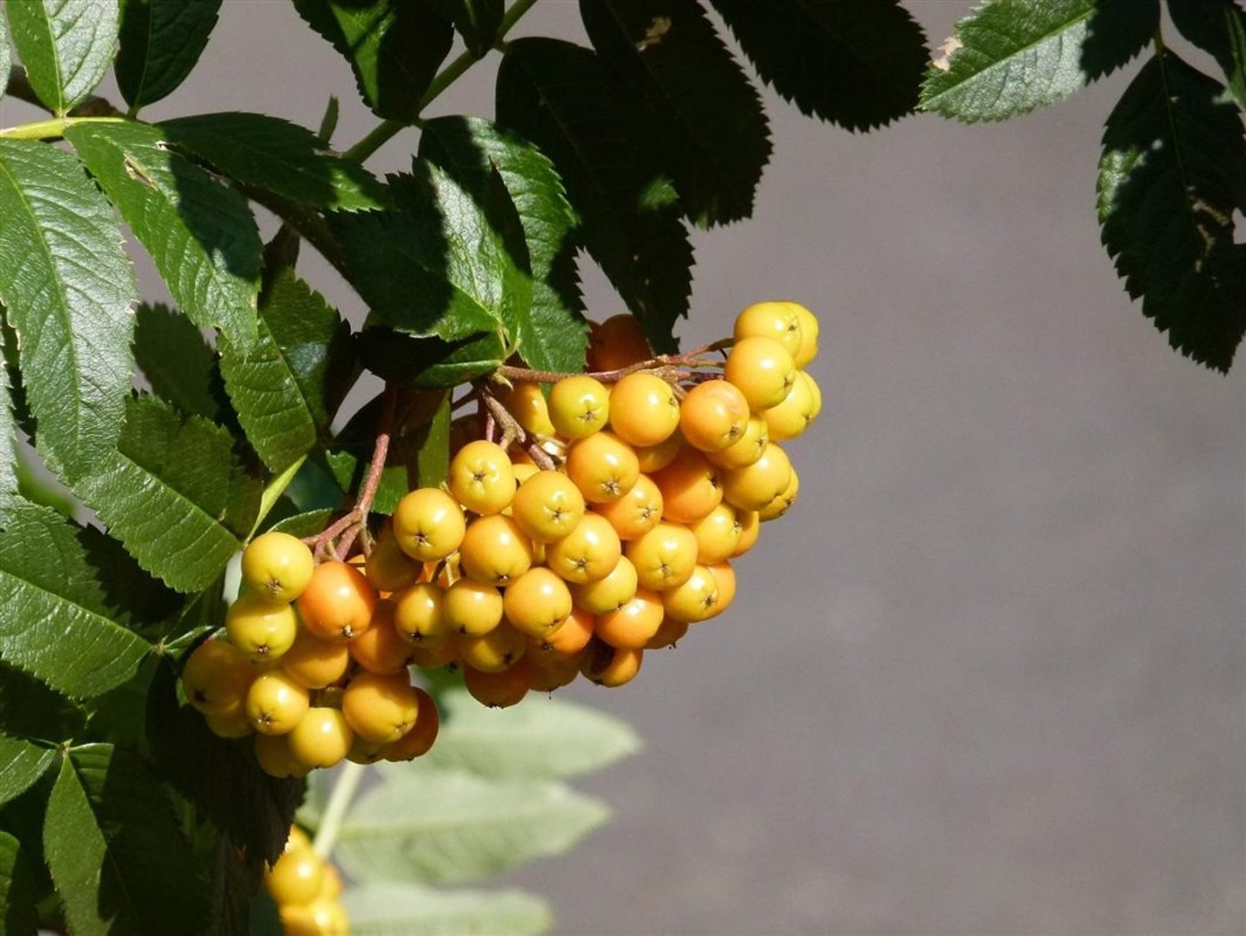 In de late lente en vroege zomer verschijnt eerst een bloei van witte bloemen, die een mooi contrast vormen met het groene blad. Na de bloei ontstaan felgele bessen die in dichte trossen aan de takken hangen. Deze opvallende vruchten blijven lang aan de boom en trekken vogels aan.