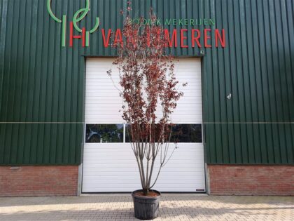 Deze sierkers combineert dieprood blad met zachtroze bloesems in het voorjaar. Een prachtige contrastboom die het hele jaar door een opvallende verschijning is.