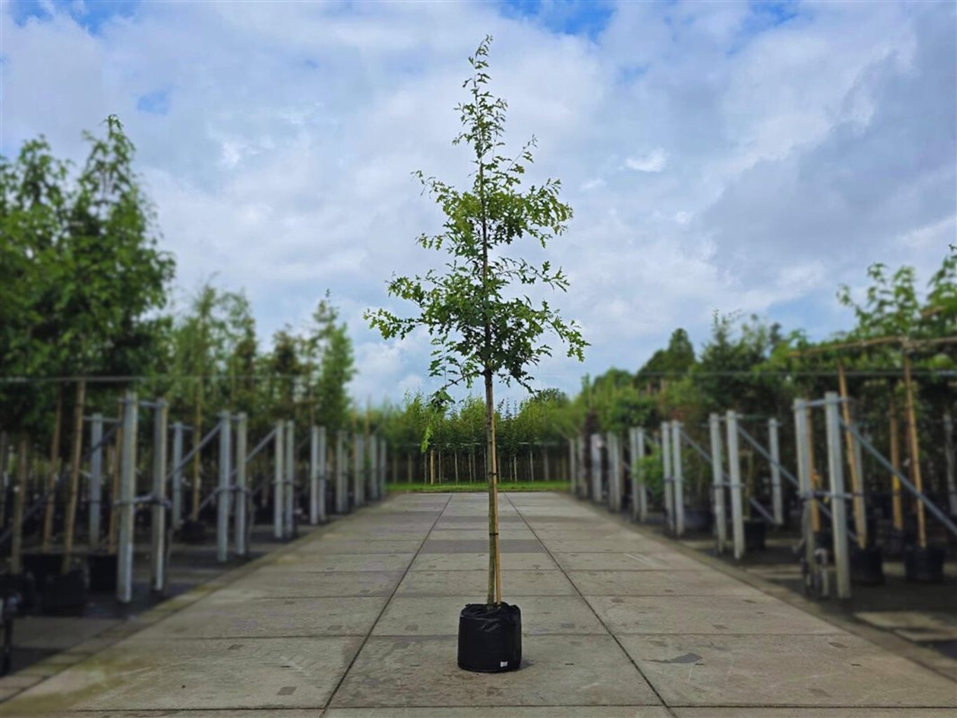 De Quercus palustris, ook wel moeraseik genoemd, heeft een breed kegelvormige kroon met groen blad dat in de herfst rood kleurt. Er zitten bolvormige eikels aan de boom. Geschikt voor alle grondsoorten.