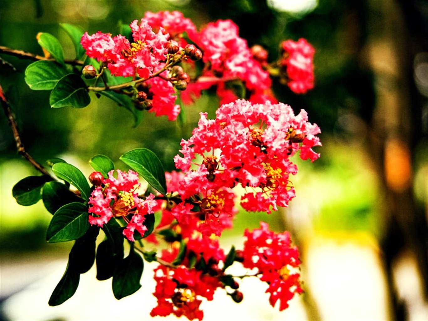 De Lagerstroemia indica ‘Dynamite’, ook wel de Indische sering genoemd, komt oorspronkelijk uit warme gebieden in Azië. Deze speciale variëteit is beroemd om zijn dieprode bloemen, die lijken op gekreukeld papier.