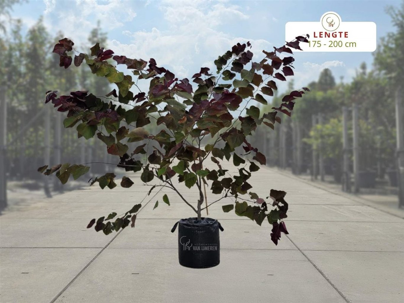 De Cercis canadensis ‘Forest Pansy’ Meerstammig, ook wel de Roodbladige Amerikaanse Judasboom genoemd is een kleinere boom (6-9 meter) die prachtig roze bloeit in het voorjaar, en ook nog eens een heel mooi donkerrood blad krijgt, wat in de herfst verkleurt naar geel, oranje, rood.