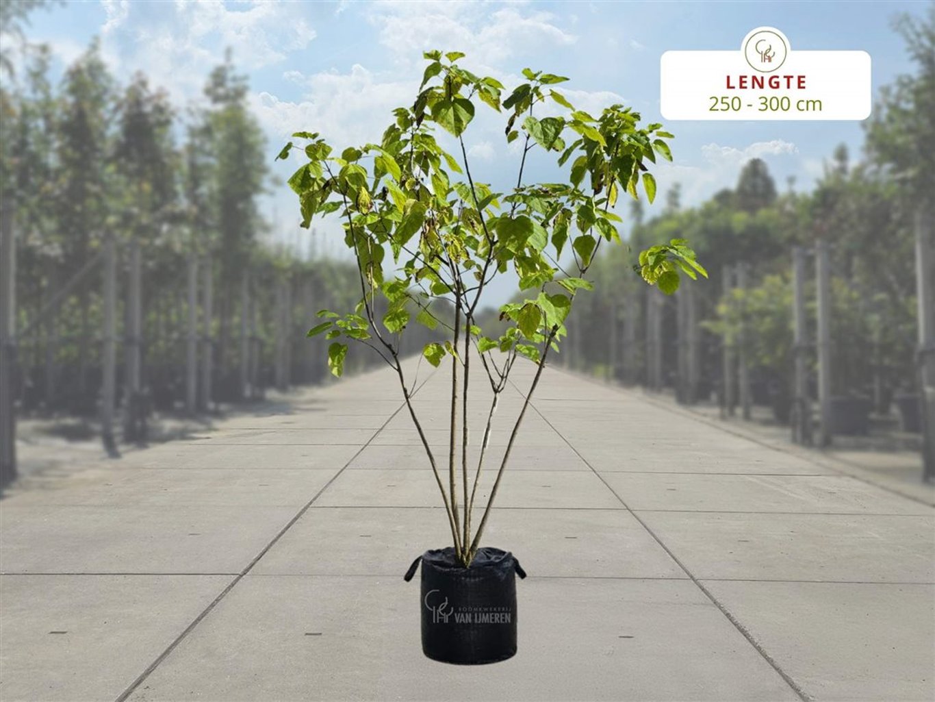 De Catalpa bignonioides is een mooie snelgroeiende meerstammige struik. De trompetboom heeft een rond halfopen kroon die grillig groeit. Dit betekend dat er niet echt een terugkerend patroon in de kroon te herkennen is. In mei, juni en juli bloeit deze boom met schitterende 25 centimeter lange witte pluimen. Het blad van de trompetboom loopt relatief laat uit.