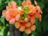 De bloemen van de Campsis grandiflora zijn trompetvormig en hebben een opvallende, warme oranje/rode kleur. Ze bloeien in de zomer en blijven vaak tot in de vroege herfst zichtbaar. De bloemen trekken vlinders, bijen en andere bestuivers aan, wat de biodiversiteit in de tuin bevordert.