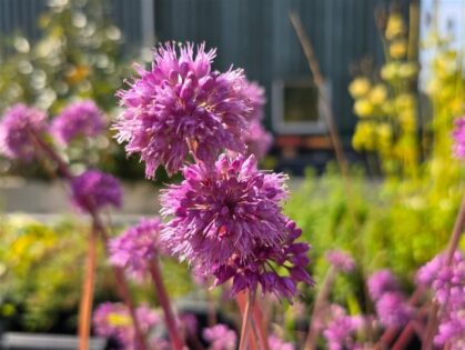 Allium senescens is een Sierui. Er komen opvallende lila – paarsachtige bollen in. Kan goed tegen de zon.