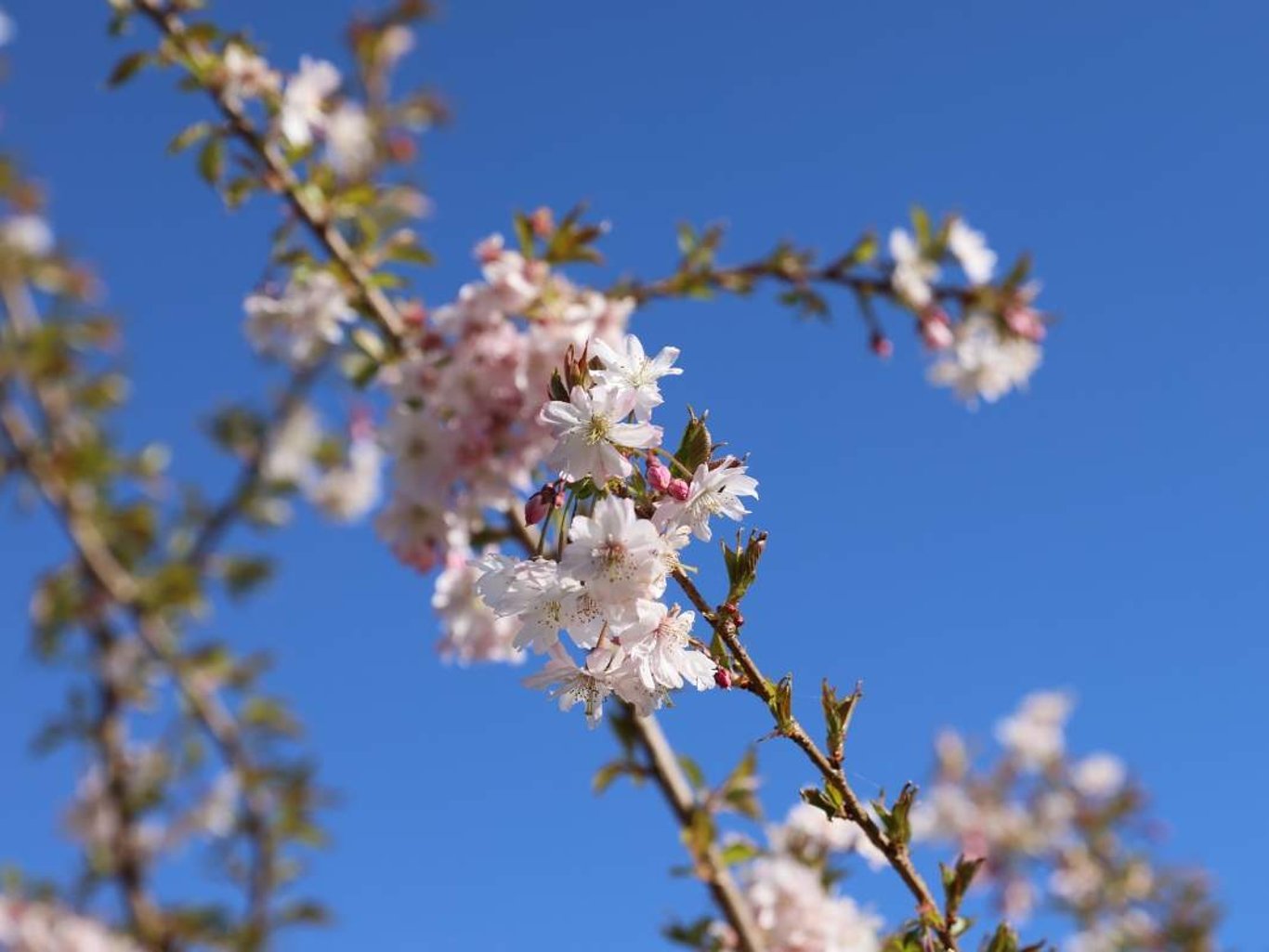 Met lichtroze bloesems die verschijnen op kale takken, biedt deze boom een mooi schouwspel tijdens de koude maanden. De bloei begint meestal in het late najaar en duurt tot het vroege voorjaar.