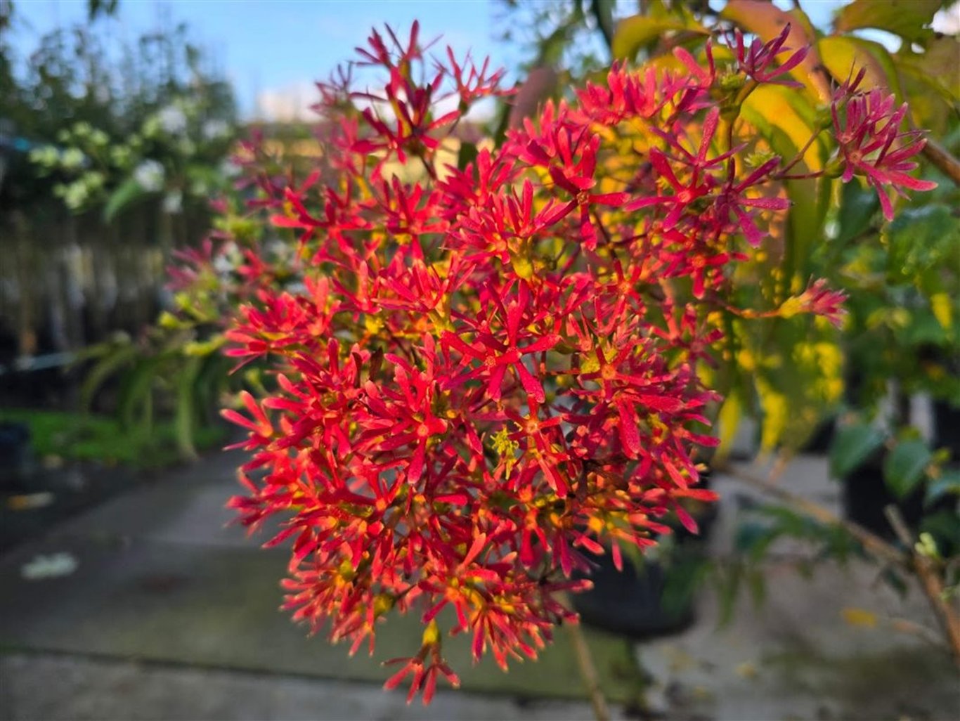De zevenzonenboom is een bijzondere sierboom die zorgt voor een mooi schouwspel in alle seizoenen. De winterharde en bladverliezende boom verdient zijn interessante naam voor de manier waarom de bloemen op de stelen zijn gerangschikt, in trossen van elk zeven bloemen. Bloeien doet deze Heptacodium miconioides in de late zomer, waarna de witte bloemen plaats maken voor een prachtige rode nabloei. Het is een aanpasbare en veelzijdige plant, de perfecte keuze voor die speciale plaats in uw tuin. Plant hem daar waar hij kan worden gezien, zodat u ervan kan genieten op elk moment van het jaar. De zevenzonenboom vormt reeds het middelpunt in vele prachtige tuinen in Nederland.